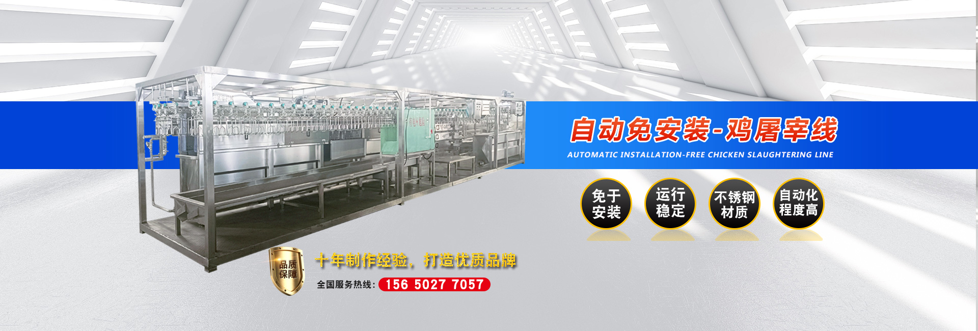公司長期與國內外屠宰加工企業合作,走引進——消化——創新和自主研發相結合的道路,在國內外同類產品的基礎上,不斷更新和改造。公司主要設備有:A字型立式脫毛機、臥式脫毛機、強力噴淋機、松毛機、浸燙池、螺旋預冷機、禽籠清洗機、電暈機、兔扯皮機、兔割前爪/后爪機、剝胗機、自動洗鉤機、螺旋燙爪機、雞爪脫皮機、分割輸送帶等屠宰用設備。其中,公司獨力發明生產設計的“電動調節脫毛機”及“自動控水控溫浸燙池”順利通過知識產權局的實質性審查。公司所生產的設備 可與國外同類產品配套使用,設備遠銷阿爾及利亞、澳大利亞等中東、非州等并建立了長期穩定的合作關系。